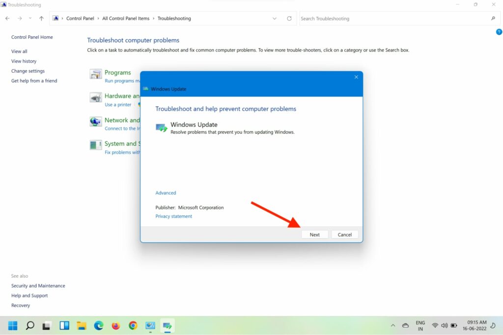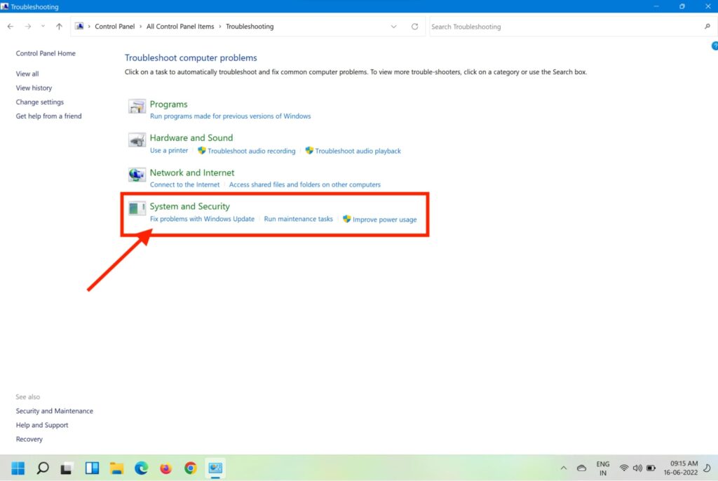 5.在下一頁上,單擊修復 Windows 更新問題在下面系統與安全。