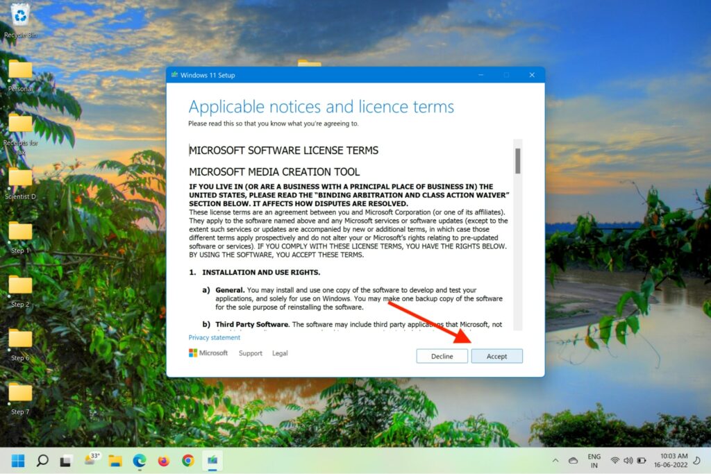4.在Windows 更新助手窗口接下來打開,同意服務條款,選擇語言和版本,選擇要使用的媒體,並按照屏幕上的說明進行操作。