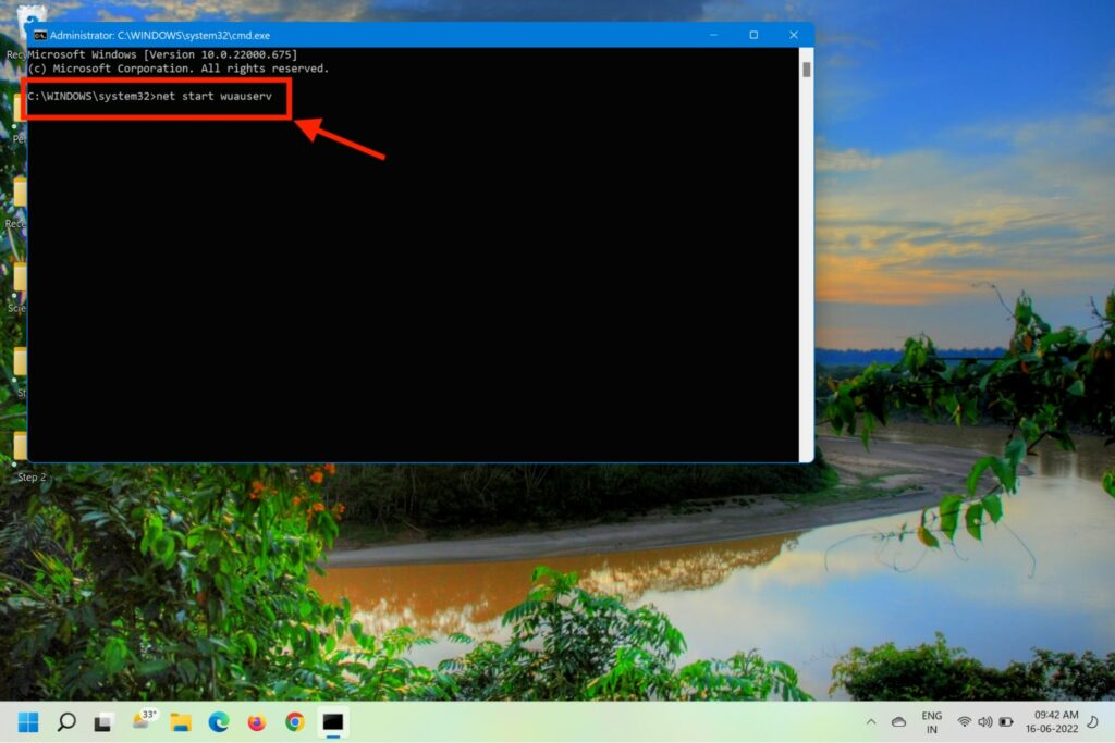 6.現在,輸入命令 –淨啟動 wuauserv、淨啟動 cryptSvc、和淨起始位。