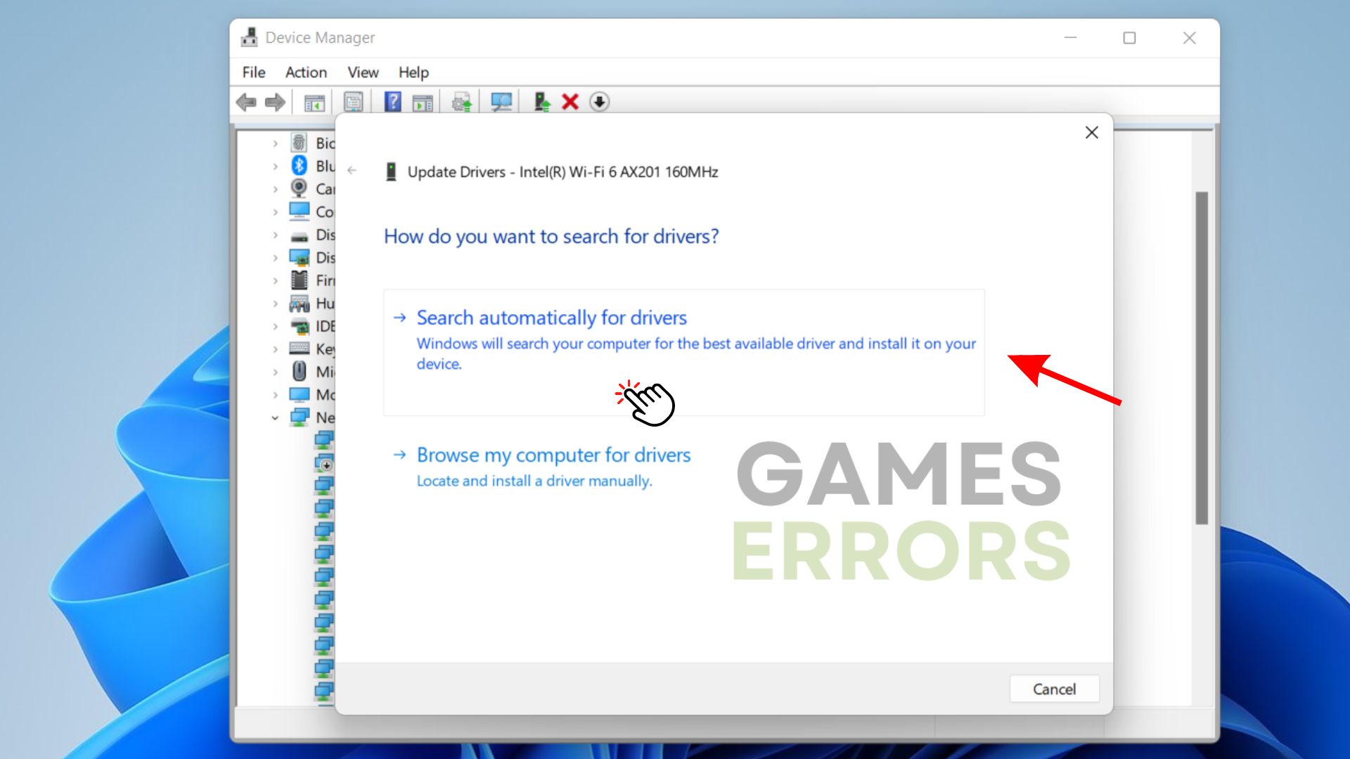 - 按自動搜索更新的驅動程序軟件並按住 Windows 進行搜索。