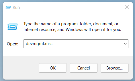 - 點擊Windows + R,和 當出現運行框時,輸入devmgmt.msc。