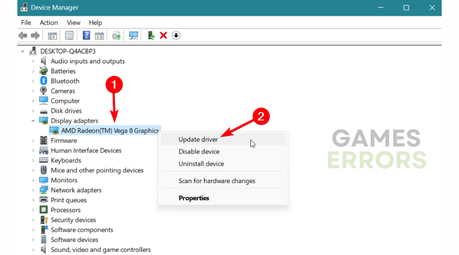 - 右鍵單擊您的特定圖形驅動程序並選擇更新驅動程序。