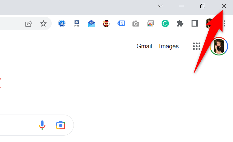 您可以通過選擇關閉 Windows 上的瀏覽器應用程序X在窗口的右上角。