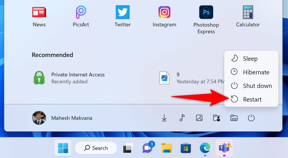 您可以通過打開開始菜單,選擇力量圖標,然後選擇重新啟動。