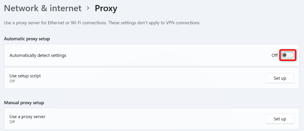 與 VPN 一樣,您的代理服務器通過第三方服務器傳輸您的互聯網數據。在某些情況下,例如您的情況,這可能會出現問題。您可以關閉 Windows 或 Mac 計算機上的代理服務器,看看是否可以解決問題。