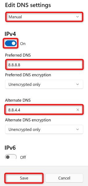 - 進入8.8.8.8在首選 DNS場和8.8.4.4在備用 DNS場地。