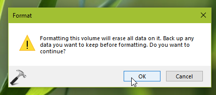 4.然後在接下來出現的確認中,單擊“確定”以啟動並完成格式化過程。