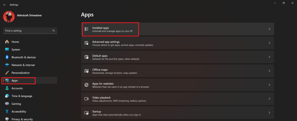 2.在左側面板中,單擊應用程式並選擇已安裝的應用程序。