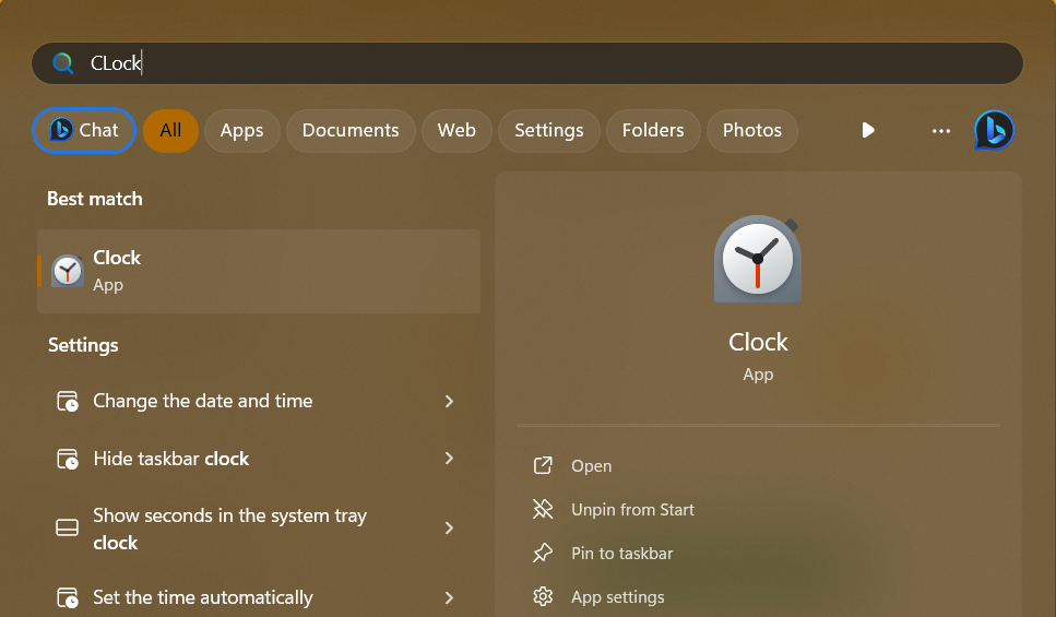 1.打開鐘您電腦上的應用程序。您可以通過搜索來完成鐘在“開始”菜單搜索欄上,然後單擊打開選項。