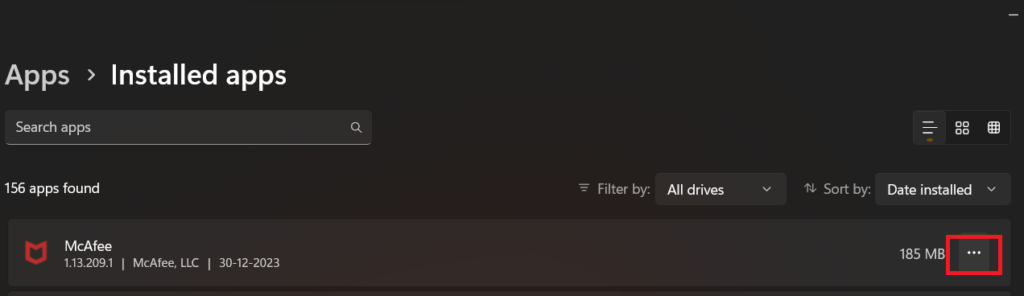 2.單擊旁邊的三個點邁克菲應用程式.