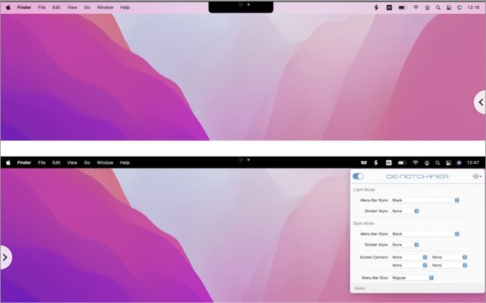 一個簡單的應用程序,承諾讓 MacBook Pro 的凹口像忍者一樣消失。它擁有一個開關,啟用後可以將菜單欄變成黑色,並有效隱藏凹口。