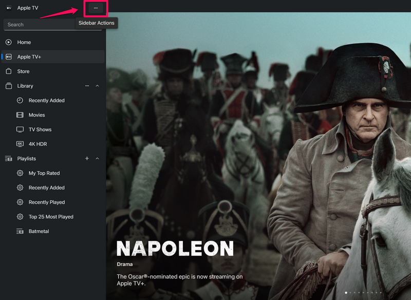 1.單擊三點(更多)按鈕旁邊的庫選項卡在Apple TV應用程序中。