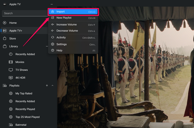 4.或者,您可以按 Ctrl + O(打開 Apple TV 應用程序)直接打開導入窗口。