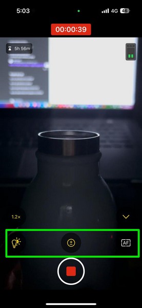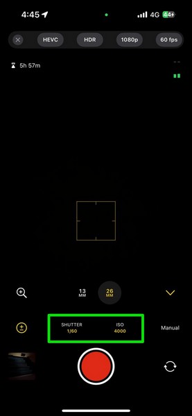 這將讓您訪問快門速度和ISO 控制用於 iPhone 上 Final Cut 相機中的視頻。然後你可以簡單地點擊任何提供的控件即可訪問其滑塊和根據您的喜好調整它們。