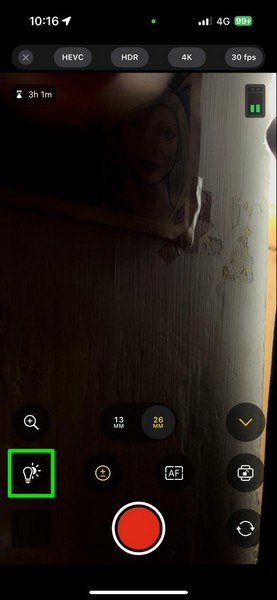 現在,來到iPhone上Final Cut Camera的主要功能,即錄製和保存視頻片段,這是相當簡單和熟悉的。因此,要開始在 iPhone 上的 Final Cut Camera 中錄製視頻,只需點擊錄製按鈕在底部。
