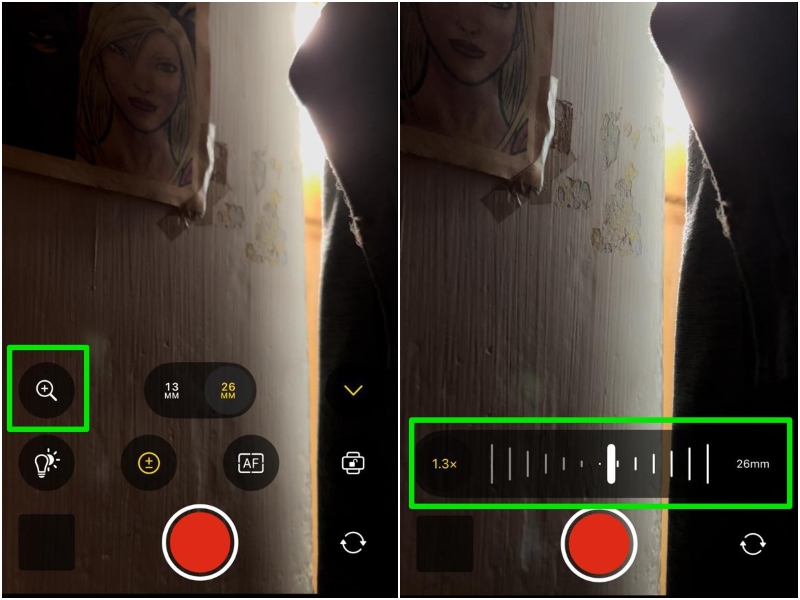 除了鏡頭切換器之外,您還會發現變焦控制按鈕和一個向上箭頭按鈕分別在左側和右側。點擊向上箭頭按鈕或簡單地在視頻預覽上向上滑動會彈出額外的專業控制按鈕。我們在本文後半部分的專門部分中討論了它們中的每一個。