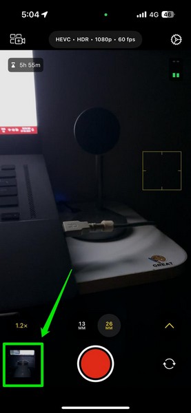 雖然錄音/停止按鈕和相機切換按鈕Final Cut 相機應用程序與 iOS 相機應用程序位於同一位置,有鏡頭切換器就在他們上方。這樣,您就可以在 iPhone 上的多個後置攝像頭鏡頭之間切換。