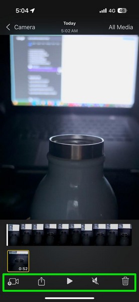 從這裡,您可以將最新的視頻鏡頭直接導出到附近 iPad 上的 Final Cut Pro 應用程序裝置,分享到其他平台,播放或暫停,打開/關閉聲音, 和刪除它。