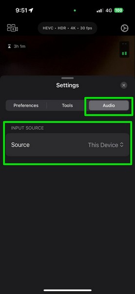 最後,根據音頻部分, 你可以錄製視頻時在音頻源之間切換使用 iPhone 上的 Final Cut Camera 應用程序。如果您在視頻製作中使用多個錄音設備並經常在它們之間切換,這會很有用。