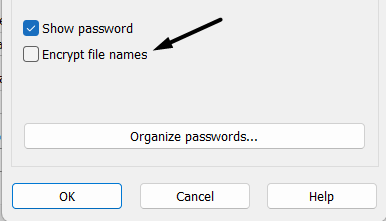6.勾選加密文件名框以防止未經授權的用戶查看存檔內的文件名。