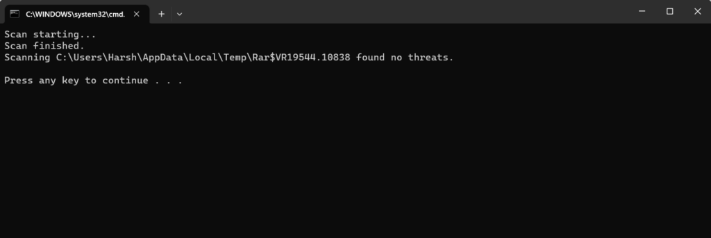 5.一個新的 命令提示符窗口將打開並要求您按鍵盤上的任意隨機鍵以繼續病毒掃描。因此,按任意鍵即可開始掃描過程。