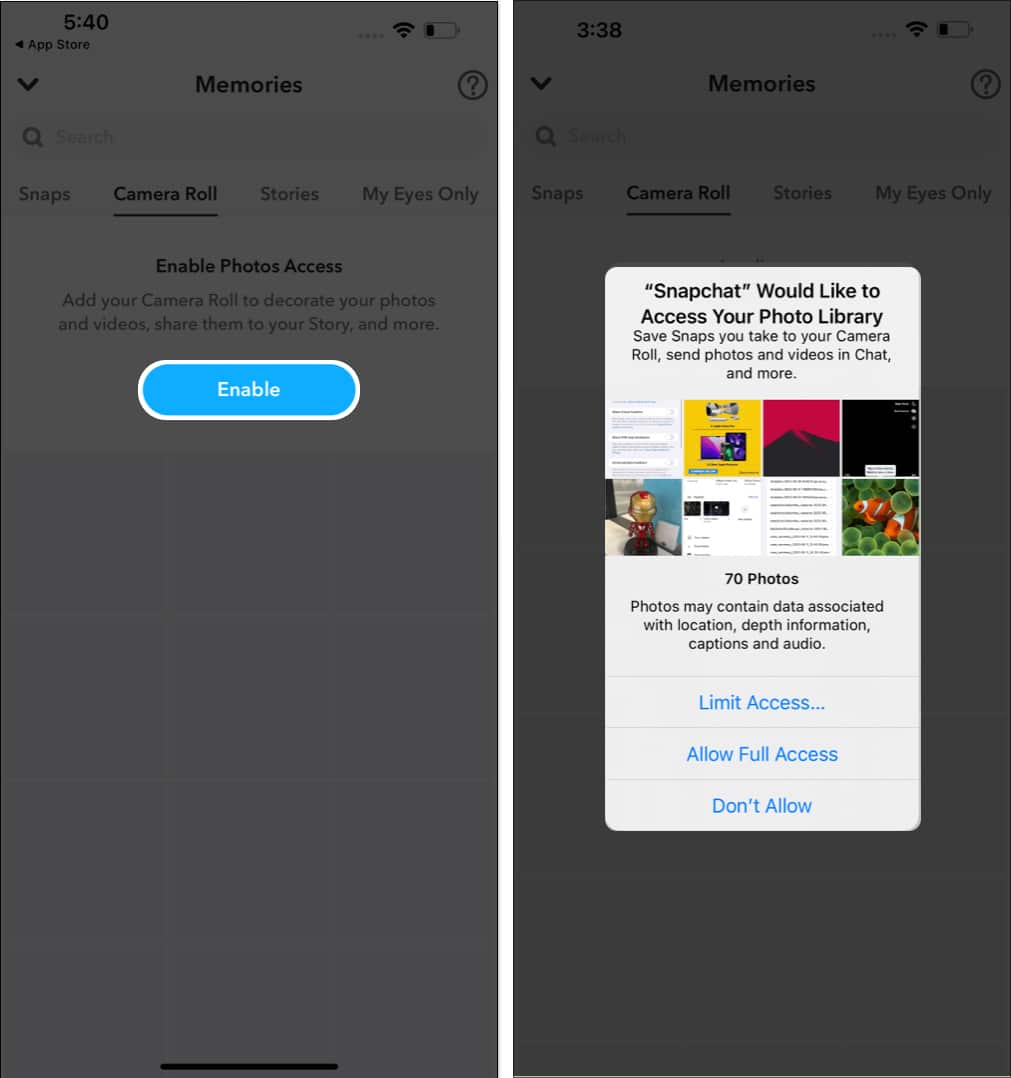 從有關照片應用程序訪問的提示中,選擇以下三個選項之一:訪問權限有限選擇特定照片,允許完全訪問對於整個圖書館,或者不允許完全拒絕訪問。