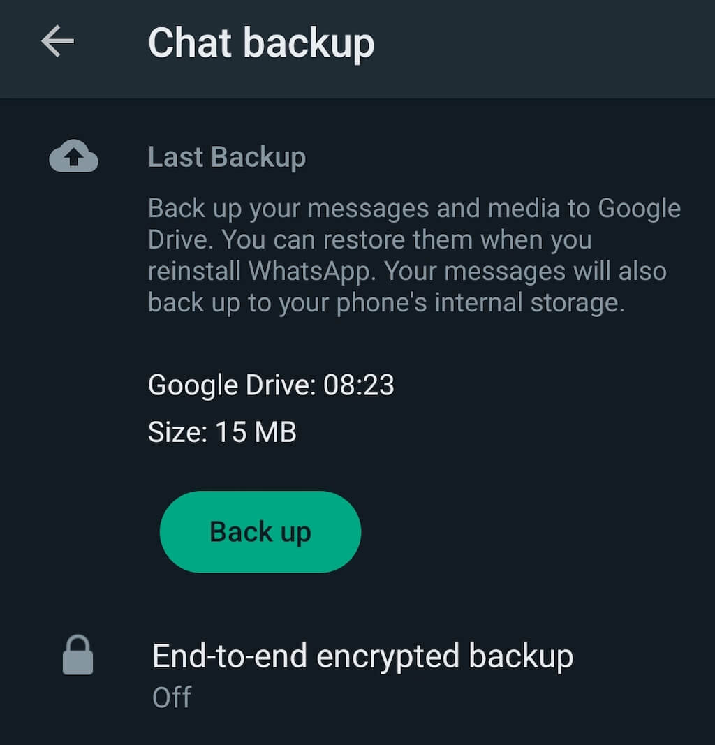 在從移動設備清除數據/刪除 WhatsApp 之前,您需要執行聊天備份。當您下次決定登錄 WhatsApp 帳戶時,它將幫助恢復您的數據。