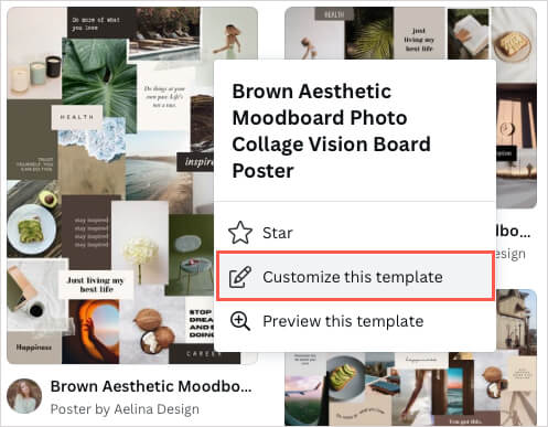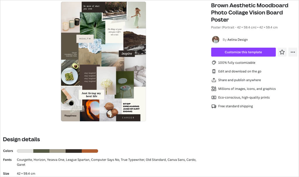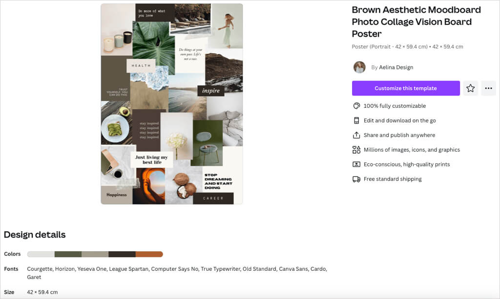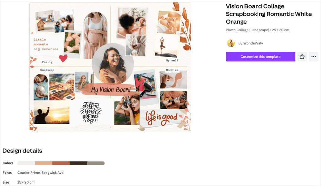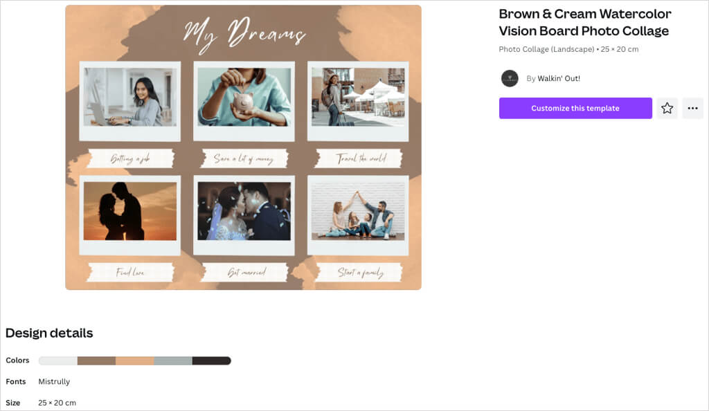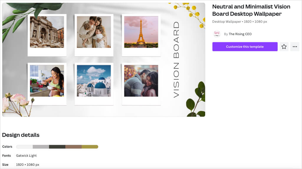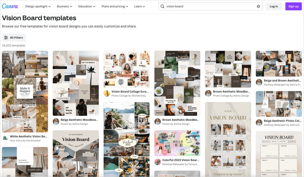除了現有的功能集之外,Canva 成為一個有吸引力的選擇的原因在於它提供了願景板模板。這可以節省您從頭開始創建願景板的時間,而且還允許您以您喜歡的方式自定義您的板。