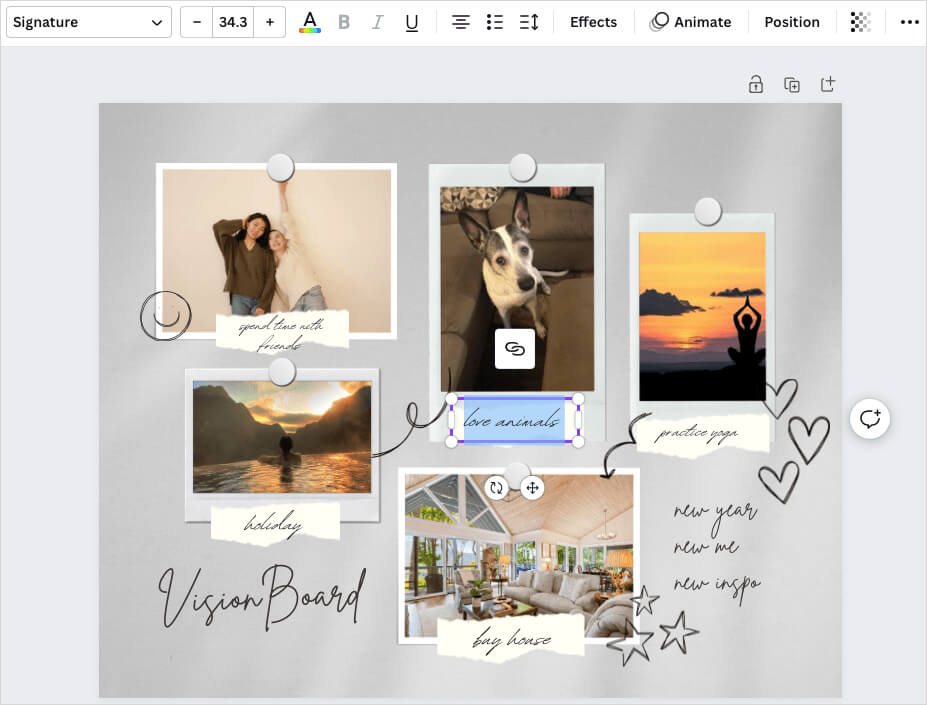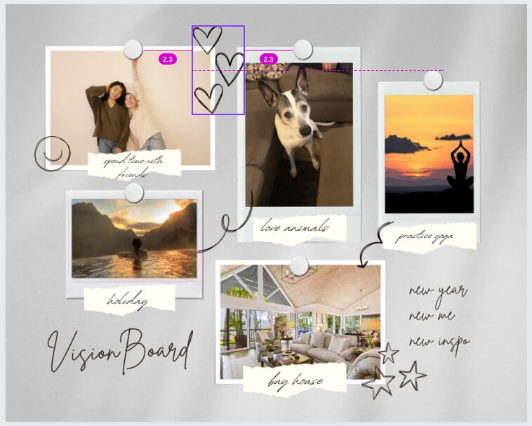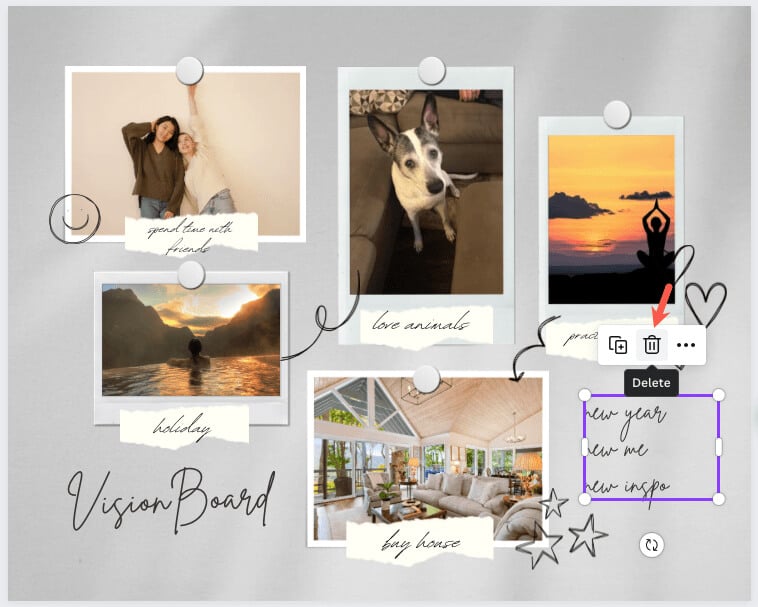 通過使用 Canva 模板創建願景板,您可以從基本設計開始,然後從那裡進行自定義。這使您有更多時間專注於要包含的元素而不是結構。