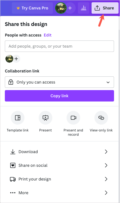 選擇模板後,它將在 Canva 的編輯器中打開,準備好開始自定義它。