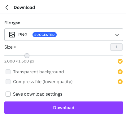 要將願景板另存為設備上的圖像,請選擇下載。然後,選擇文件類型,調整尺寸,並可選擇標記其他設置。