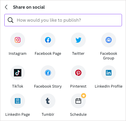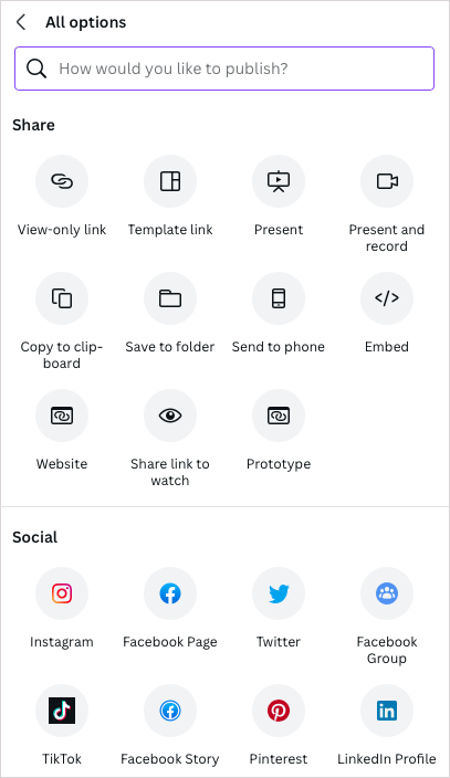 要在社交媒體上分享圖板,請選擇在社交媒體上分享。然後,選擇 Instagram、Facebook、TikTok 或 Pinterest 等服務。