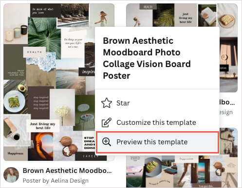 - 當您看到您感興趣的模板時,您可以看到它的預覽。選擇模板圖像右上角的三個點,然後選擇預覽此模板。