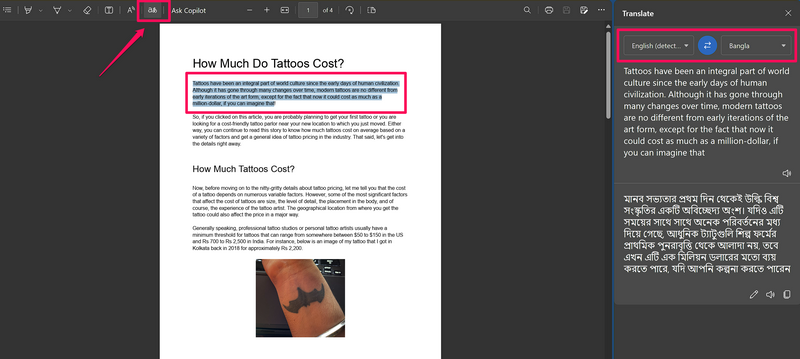 5.您還可以使用翻譯工具到翻譯內容的特定部分。