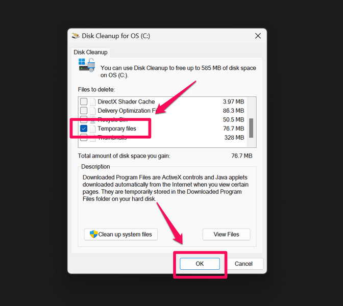話雖如此,您可以按照以下步驟使用磁盤清理工具刪除 Windows 11 PC 或筆記本電腦上的 TMP 文件: