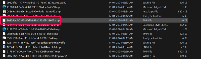 即使您使用 Microsoft Edge 打開由它創建的 TMP 文件,您也可能找不到有用的東西。它可能都是胡言亂語的編碼或二進制數據和信息,無論如何都是無用的。