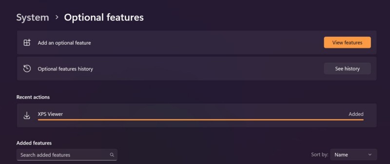 11. 等待XPS查看器添加在您的 Windows 11 電腦或筆記本電腦上。