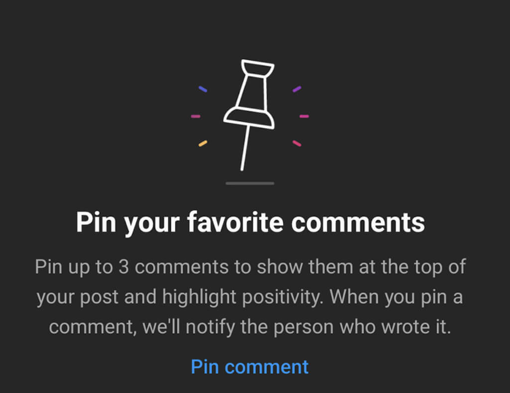 - 當您置頂評論時,用戶將收到來自 Instagram 的通知。