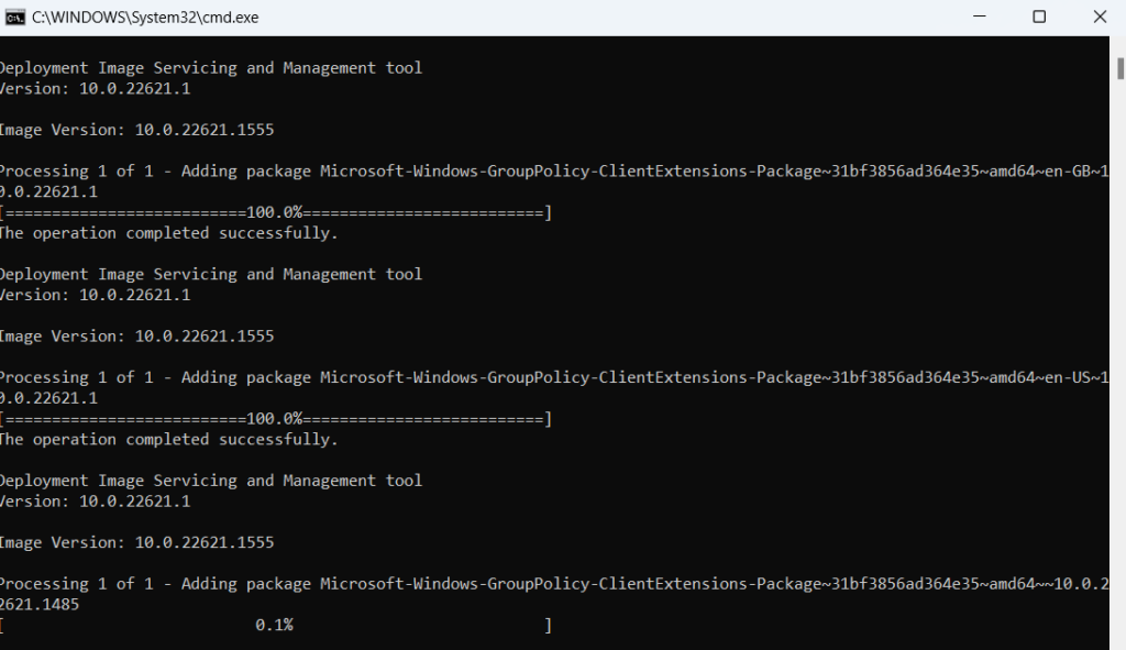 dir /b %SystemRoot%servicingPackagesMicrosoft-Windows-GroupPolicy-ClientExtensions-Package~3*.mum >List.txt