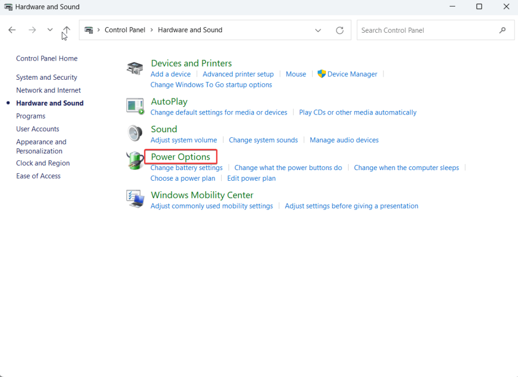 您還可以尋求幫助電源選項在控制面板並調整設置以禁用背景。為此,請按照以下步驟操作 –