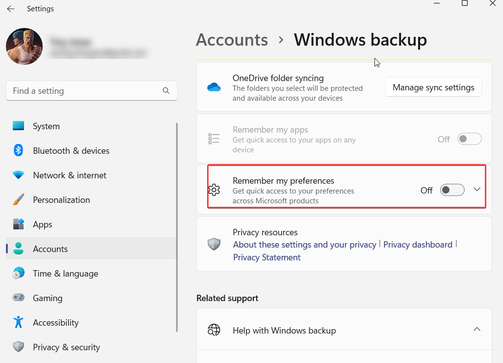 您可以切換到本地帳戶並斷開與 Microsoft 帳戶的連接。此步驟還有助於禁用 Windows 在所有設備上同步設置的功能 –
