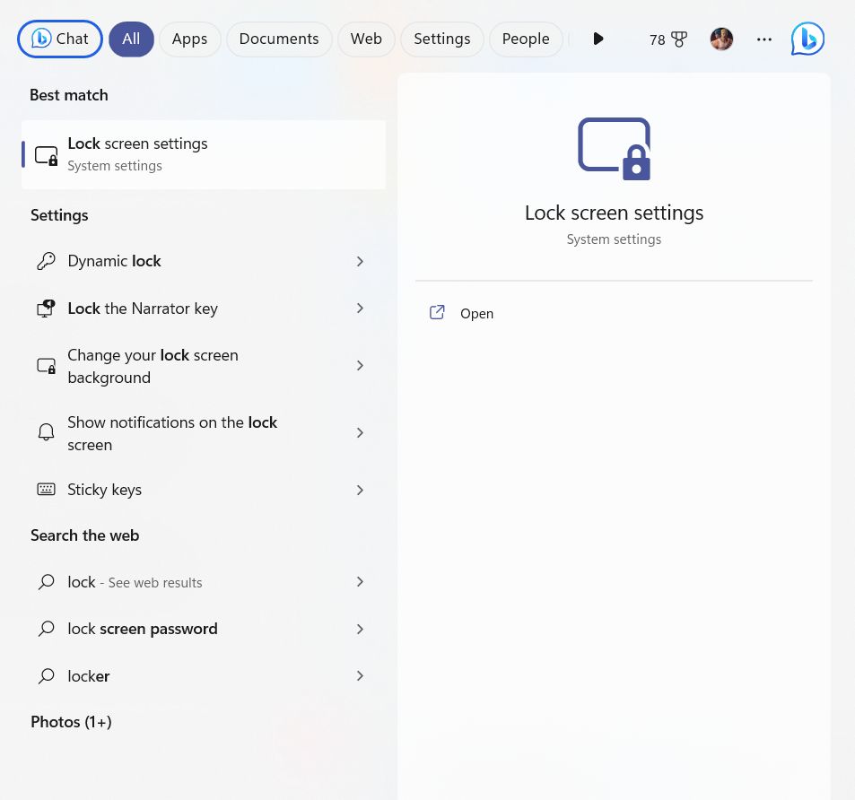 1. 在 Windows 搜索欄中輸入鎖屏設置並點擊打開從右邊。