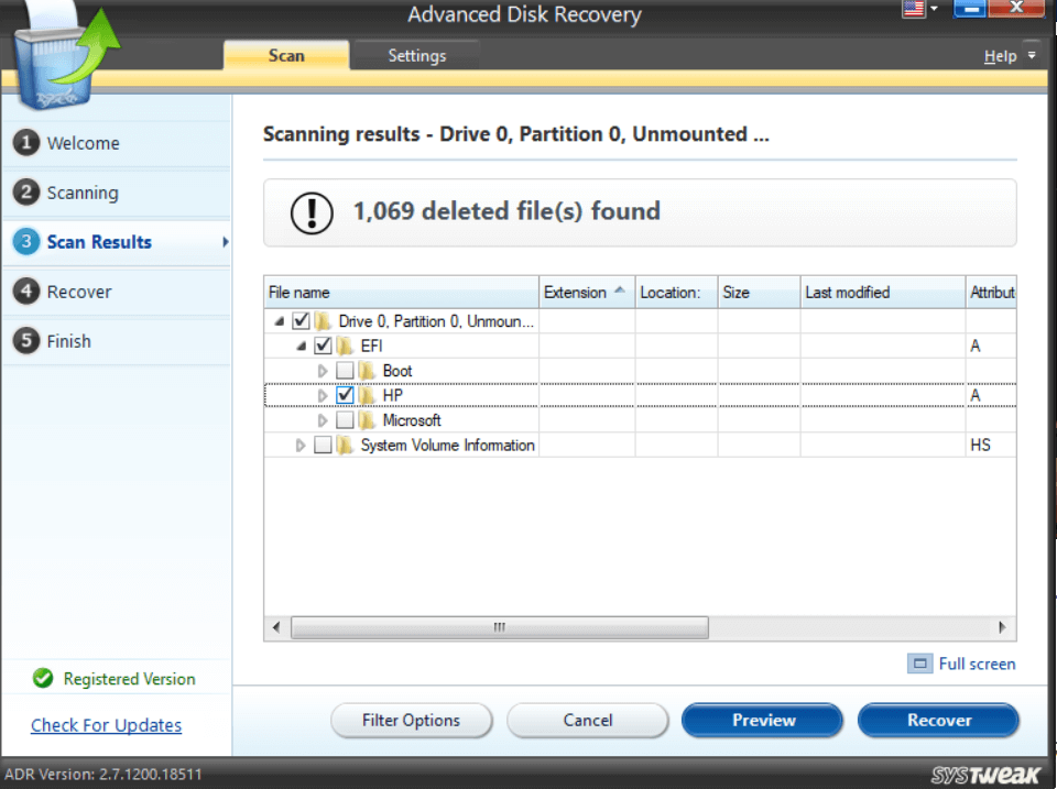 步驟 6 –等待掃描結束。從右側的掃描結果中,選擇要恢復的文件或文件夾。為此,請單擊文件或文件夾名稱旁邊的複選框。您甚至可以點擊預覽預覽文件或文件夾的內容。