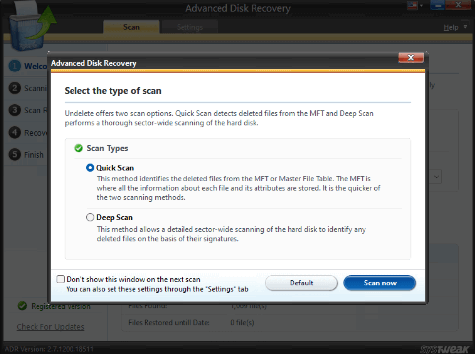 步驟 5 –選擇掃描類型並點擊立即掃描。我們建議您選擇深度掃描。這將對硬盤進行詳細的扇區範圍掃描,並根據簽名找到丟失的文件。