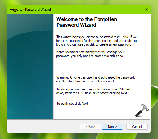 1.輸入錯誤的密碼或密碼中的任何內容,然後按 Enter。您現在可以看到重置密碼屏幕上提供鏈接。只需單擊它,就會出現密碼重置嚮導。點擊下一個。