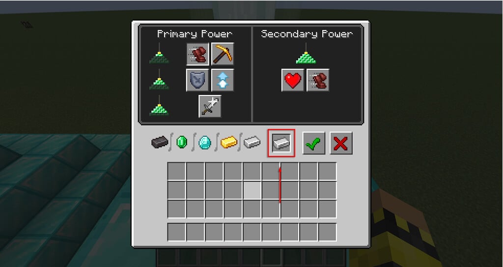 要激活狀態效果,您必須向信標提供金錠、鐵錠、下界合金錠、鑽石或綠寶石。為此: