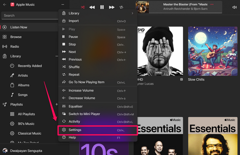 3.或者,您可以按 Ctrl + ,(打開 Apple Music 應用程序)直接打開 設定頁。