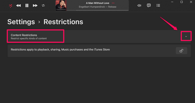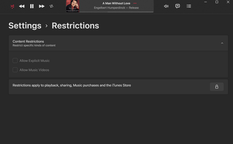 除了允許用戶從 Windows PC 或筆記本電腦導入歌曲文件、更改歌曲的插圖以及啟用 Crossfade 效果之外,Apple Music 應用程序還允許用戶在 Windows 11 上設置內容限制。因此,如果未成年人經常使用 Windows 11 PC 或筆記本電腦上的 Apple Music 應用程序,設置內容限制可能是一個好主意,以防止他們接觸露骨的歌曲和視頻。