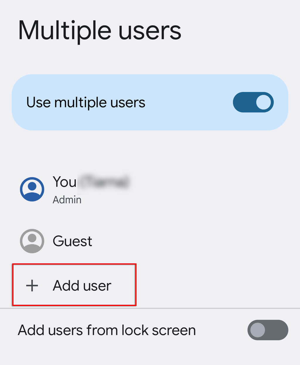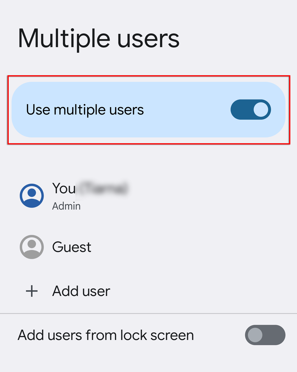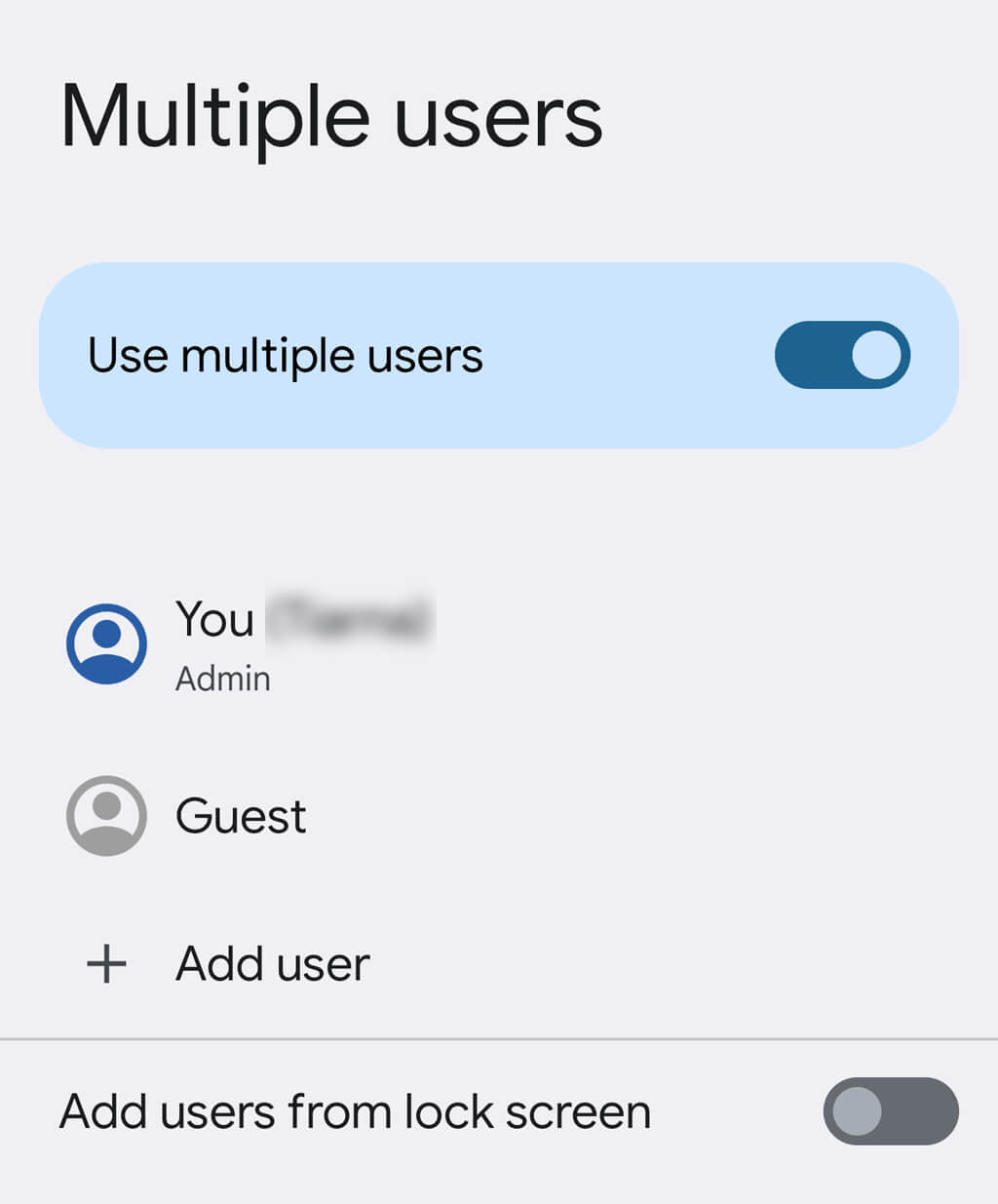 - 打開設定>系統>多用戶。您還可以通過從屏幕頂部向下滑動以訪問“快速設置”並點擊屏幕右下角的人形圖標來訪問此功能。
