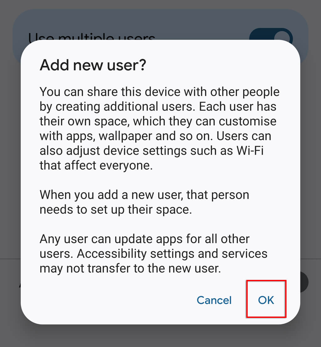 筆記:所有 Android 版本都支持多個用戶帳戶。但是,有些設備沒有。 Google Pixel 手機支持用戶帳戶,但三星 Galaxy 手機不支持。另一方面,三星平板電腦卻做到了。這與蘋果公司形成鮮明對比,蘋果公司沒有 iPhone iOS 版本支持多用戶。